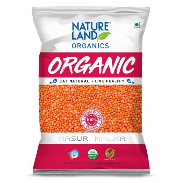 Natureland Organics Malka Masoor Dal/Red Masoor Dal 500 Gm (pack of 3) – Organic Pulses – Organic Food – Fast Shipping to USA & Canada
