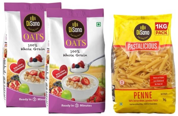 Disano Oats, 100% Wholegrain, Pouch 2 Kg & Pastalicious 100% Durum Wheat Penne Pasta, 1Kg – Fast Shipping to USA & Canada