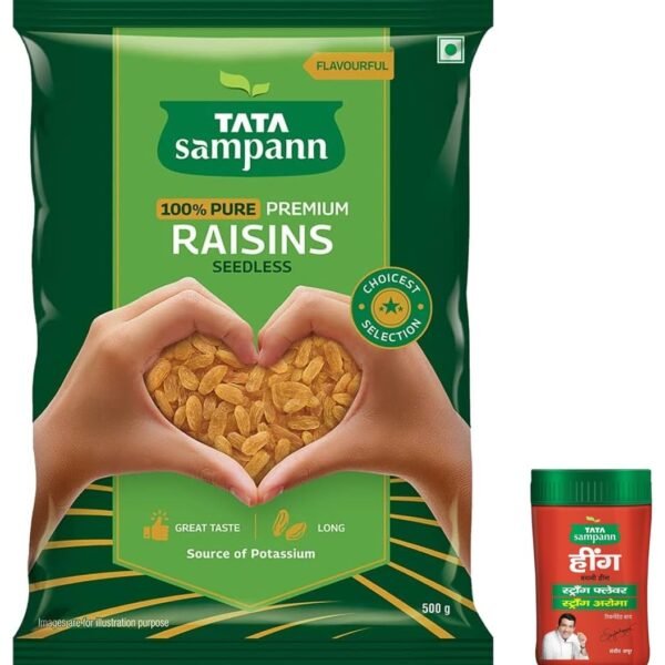 Tata Sampann Pure Raisins Seedless | 500g Value Pack & Tata Sampann Hing (Bandhani Hing), 50g – Fast Shipping to USA & Canada