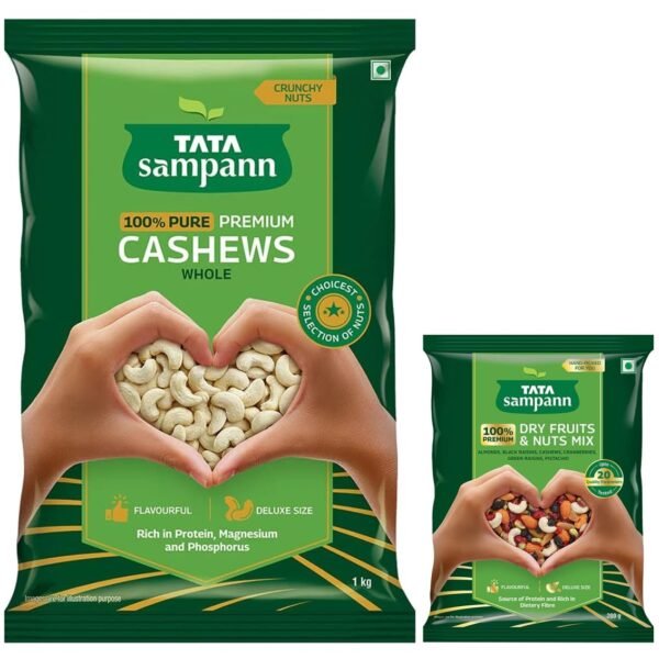 Tata Sampann Pure Cashews Whole| 1kg Value Pack & Tata Sampann Dry Fruits & Nuts Mix, 200 g – Fast Shipping to USA & Canada