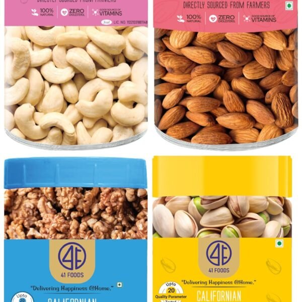 41 FOODS Premium Dry Fruits and Nuts Combo of Healthy Fresh Cashews Almonds Pistachios Walnuts Nutritious Badam Kaju Pista Akhrot (500Gm X 4) 2 KG – Fast Shipping to USA & Canada