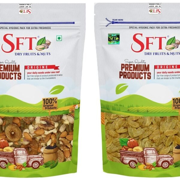 SFT Raisins Afghani Green Handpicked (Kishmish) Seedless, Dry Grapes 1kg & Mixed Dry Fruits Nuts Pouch, 1000 g & Walnut Kernels Whole (Sabut Akhrot Giri) Gola Akhrot, Both Side Full Size Kernels, 1kg – Fast Shipping to USA & Canada