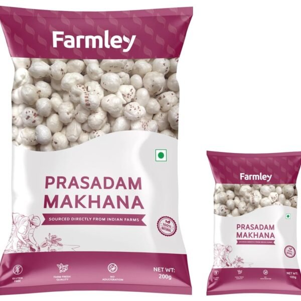 Farmley Prasadam Makhana, 100% Natural & Crunchy (200 g) & Farmley Prasadam Makhana Fox Nuts 100 g | Big Size Phool Makhana Indian Snacks – Fast Shipping to USA & Canada