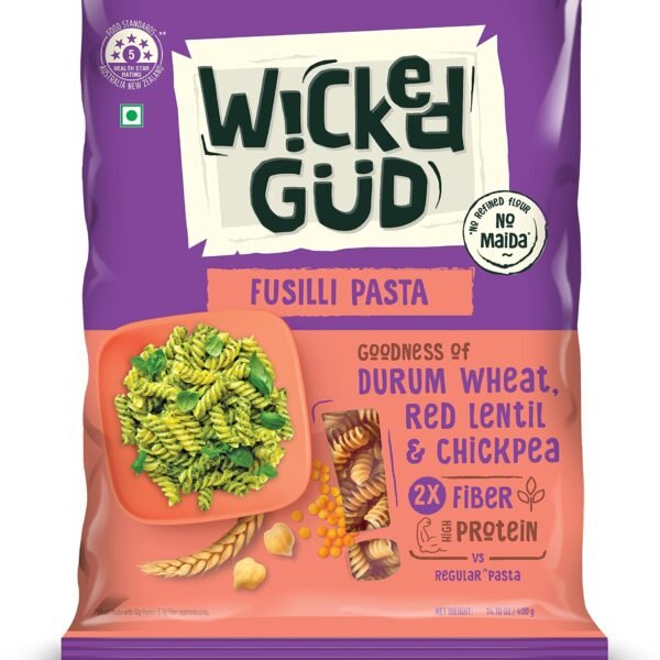 WickedGud 2X Fiber Fusilli Pasta | No Maida | Durum Wheat Semolina | Brown Rice | Red Lentils | Healthy Diet Pasta – 400gm – Fast Shipping to USA & Canada