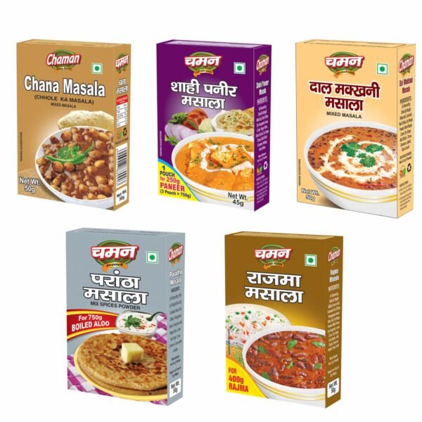 Chaman Masala Mix Combo Pack Of 5 Indian Masala Mixes for Chana, Shahi Paneer, Dal Makhni, Paratha, and Rajma | Spice Blends for Rich, Aromatic Curries | Easy-to-Use Masala Pack | 5 Varieties – Fast Shipping to USA & Canada