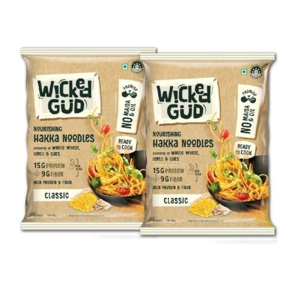 WickedGud Hakka Noodles (200gm x 2) No Maida | No Oil | No MSG | High Protein | High Fibre | Cholesterol Free – Fast Shipping to USA & Canada
