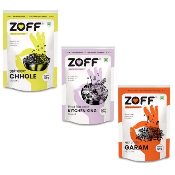 Zoff Masala Trio: Chole, Kitchen King & Garam Masala | Pack of 3* Each 100g | Premium Zip Lock Pouch | Net weight – 300g – Fast Shipping to USA & Canada