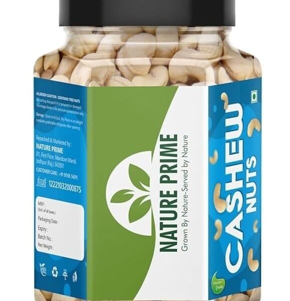 Nature Prime Pure Cashews Whole/Kaju, 250g, Nutritious & Delicious, Premium Kaju nuts, Rich in Protein, Magnesium & Phosphorus, Deluxe Size & Crunchy Nuts (JAR PACK) – Fast Shipping to USA & Canada