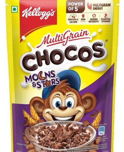 Kellogg’s Chocos Moons & Stars with Free Mask for Kids | Whole Grain | Source of Fibre | High in Calcium & Protein | with 10 Essential Vitamins & Minerals, Breakfast Cereals | 375g Pack – Fast Shipping to USA & Canada
