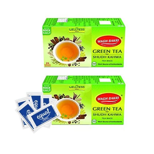 Wagh Bakri Shudh Kahwa 25 Tea Bags ( Pack of 2 ) + 10 Equal Sugar Free Sachet ( Free ) – Fast Shipping to USA & Canada