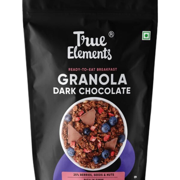 True Elements Granola Dark Chocolate 400g – Baked Granola | Almonds, Berries & Dark Chocolate | Granola for Breakfast | High Fibre Cereal | Diet Snack – Fast Shipping to USA & Canada