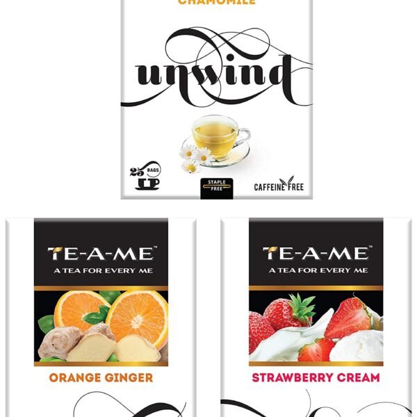 TE-A-ME Chamomile Infusion Tea, 25 Infusion Tea Bags- Orange Ginger Herbal Infusion Tea, Pack of 25 Tea Bags (2 Flavored Bags Free) – Strawberry Cream Infusion, 25 Tea Bags (3 Flavored Bags Free) – Fast Shipping to USA & Canada