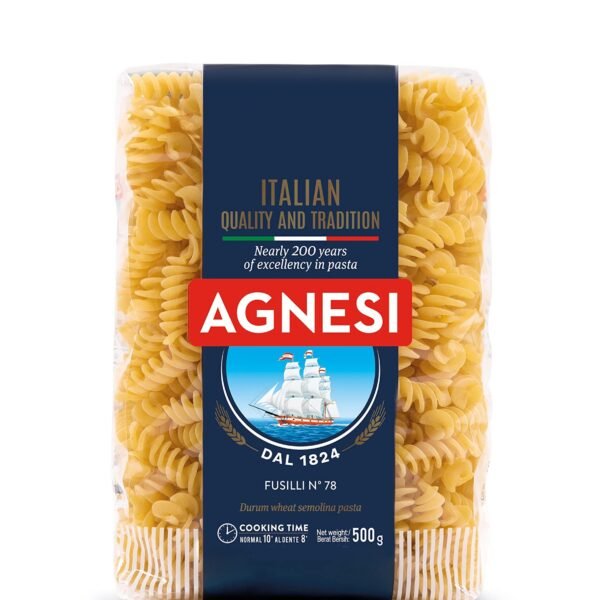 Agnesi Fusilli Pasta, 500g l Imported from Italy l Low Calories l Zero Cholesterol l Zero Salt l No Added Sugar l Durum Wheat l – Fast Shipping to USA & Canada