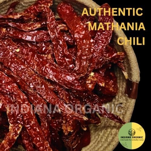 Indiana Organic Mathania Whole Red Chili – 400 gram | Rajasthani Mathania Whole Mirch, Sabut lal mirch, Stemless, 400 gram (vaccum packed air tight) – Fast Shipping to USA & Canada