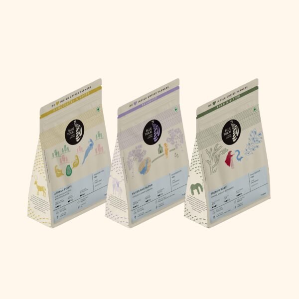 Blue Tokai Coffee Roasters Sampler Pack – Medium Roasted Whole Bean 75G Each Of Attikan Estate, Silver Oak Blend And French Roast | Made With 100% Specialty Grade Arabica, Bag – Fast Shipping to USA & Canada