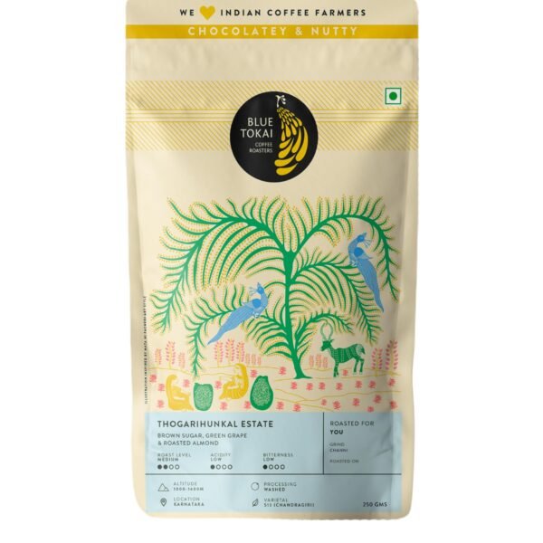 Blue Tokai Coffee Roasters Thogarihunkal Estate Washed – Medium Roast (Channi Grind) 250g | Made With 100% Specialty Grade Arabica Freshly Roasted Ground Coffee, Bag – Fast Shipping to USA & Canada