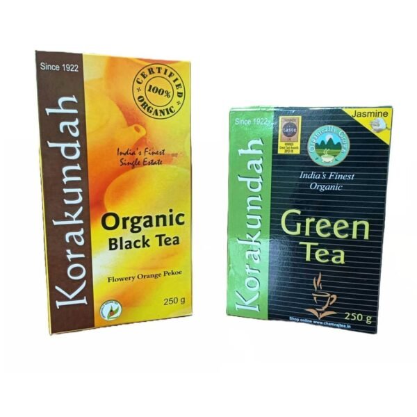 KORAKUNDAH Organic Black Tea 250 g | KORAKUNDAH Organic Green Tea 250 g Pack of 2 | Total 500 g|India’s Finest Chamraj Nilgiri Tea – Fast Shipping to USA & Canada
