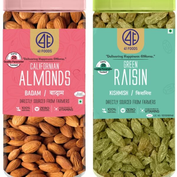 41 FOODS Premium Dry Fruits and Nuts Combo of Healthy Fresh Almonds Raisins Nutritious Delicious Crunchy Badam Soft Juicy Kishmish 200Gm X 2 400GM – Fast Shipping to USA & Canada