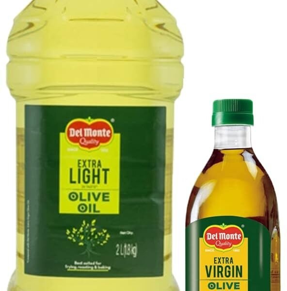 Del Monte Extra Light Olive Oil PET, 2L & Del Monte Extra Virgin Olive Oil, Cold Extracted, Ideal for drizzling on salads & sauteed vegetables, 1L – Fast Shipping to USA & Canada