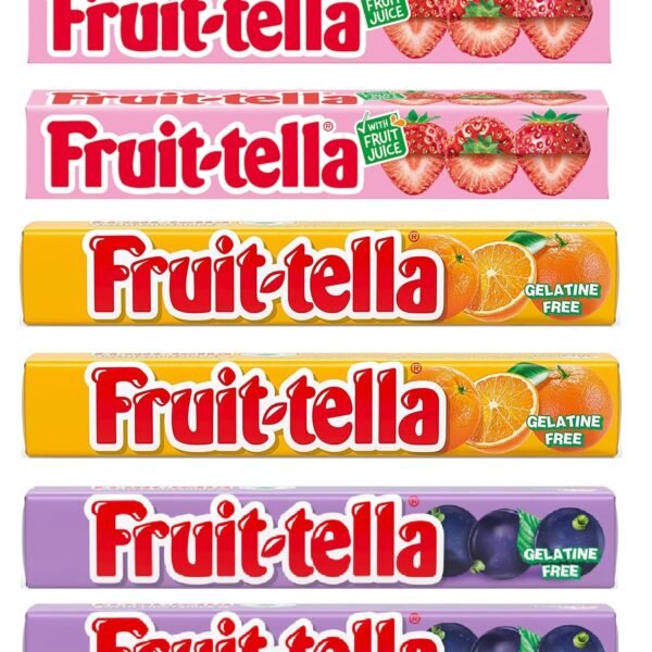 Fruit-Tella Strawberry (Pack Of 2), Blackcurrent (Pack Of 2), Orange (Pack Of 2) Flavour Chewy Toffee Stick (6 x 32.4g) – Fast Shipping to USA & Canada