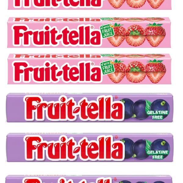 Fruit-Tella Strawberry (Pack Of 3), Fruit-Tella Blackcurrent Flavour (Pack Of 3) Chewy Toffee Stick (6 x 32.4g) – Fast Shipping to USA & Canada