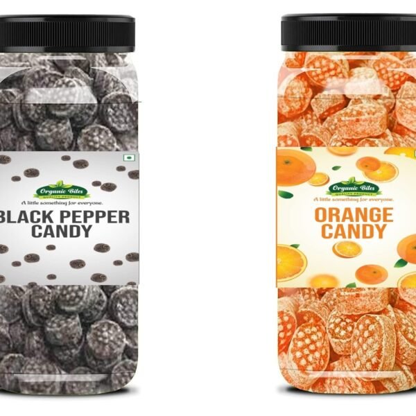 Organic Bites Combo of Black Pepper Candy and Orange Candy 200 gm each (Total 400 gm Jar Pack) – Fast Shipping to USA & Canada