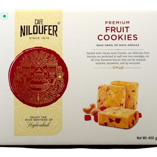 Cafe Niloufer Premium Fruit Biscuits 400 g | Tutti-frutti and Cashews | Hyderabad’s choice – Fast Shipping to USA & Canada