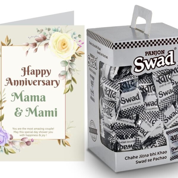 Swad Happy Anniversary Mama & Mami Gift with Card (Swad Digestive Candy 125 Gift Box & 1 Greeting card) – Fast Shipping to USA & Canada