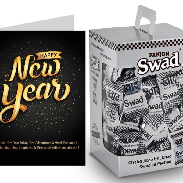 Swad Happy New Year Gift with Card (Swad Digestive Candy 125 Gift Box & 1 Greeting card) – Fast Shipping to USA & Canada
