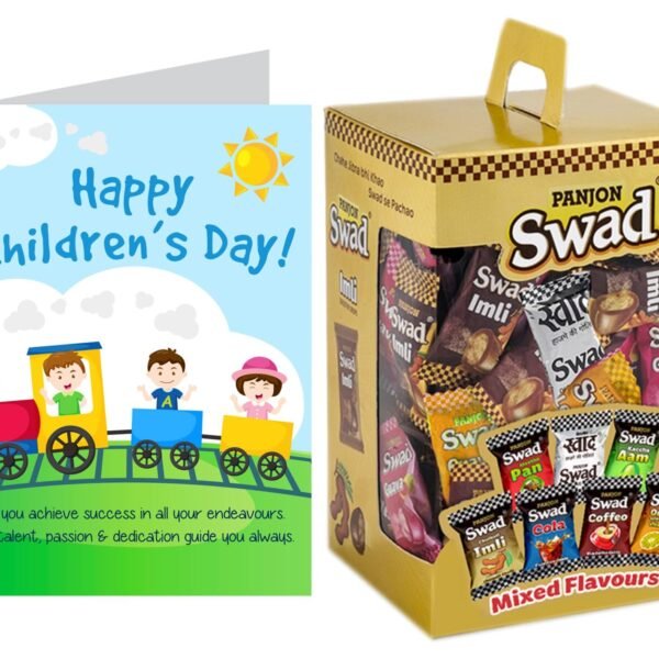 Swad Gift for Happy Childrens Day with Card (Swad Mixed Candy 125 Gift Box & 1 Greeting card) – Fast Shipping to USA & Canada
