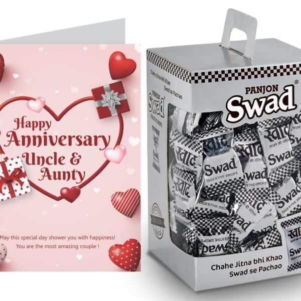 Swad Happy Anniversary Uncle & Aunty Gift with Card (Swad Digestive Candy 125 Gift Box & 1 Greeting card) – Fast Shipping to USA & Canada