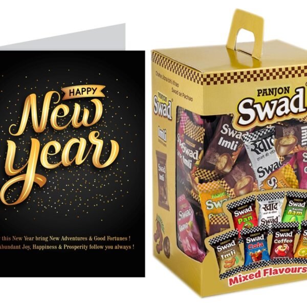 Swad Happy New Year Gift with Card (Swad Mixed Candy 125 Gift Box & 1 Greeting card) – Fast Shipping to USA & Canada