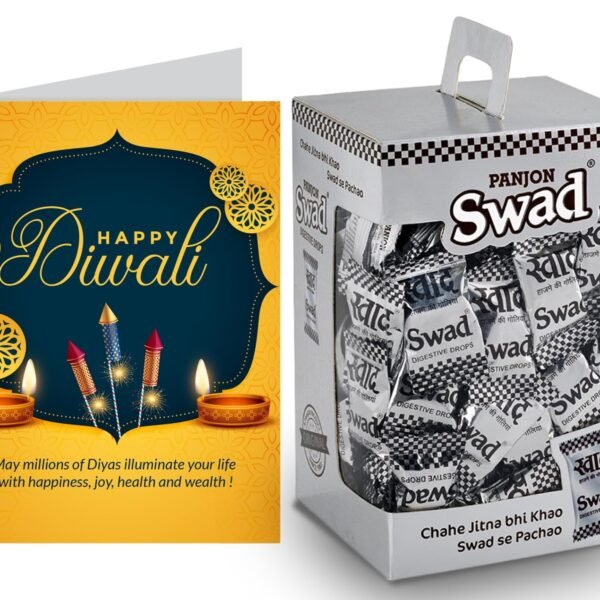 Swad Gift for Happy Diwali Deepawali with Card (Swad Digestive Candy 125 Gift Box & 1 Greeting card) – Fast Shipping to USA & Canada