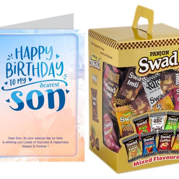 Swad Happy Birthday Gift for Son/Beta with Card (Swad Mix Candy 125 Gift Box & 1 Greeting card) 2 units – Fast Shipping to USA & Canada
