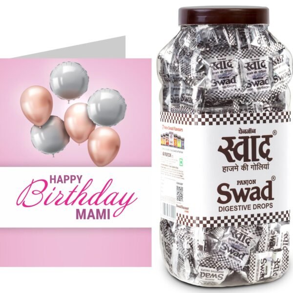 Swad Happy Birthday Mami Gift with Card (Swad Digestive Candy 200 Jar & 1 Greeting card) – Fast Shipping to USA & Canada
