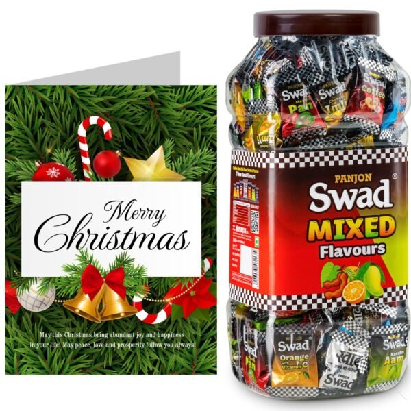 Swad Merry Christmas Gift with Card (Swad Mixed Flavours Candy 200 Jar & 1 Greeting card) – Fast Shipping to USA & Canada