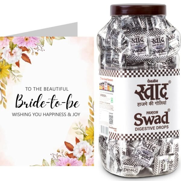Swad Prospective Bride To Be/engaged Gift with Card (Swad Digestive Candy 200 Jar & 1 Greeting card) – Fast Shipping to USA & Canada