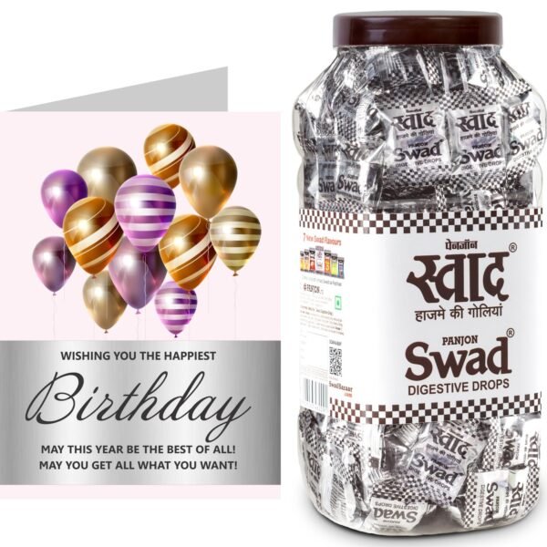 Swad Happy Birthday Friend Gift with Card (Swad Digestive Candy 200 Jar & 1 Greeting card) – Fast Shipping to USA & Canada