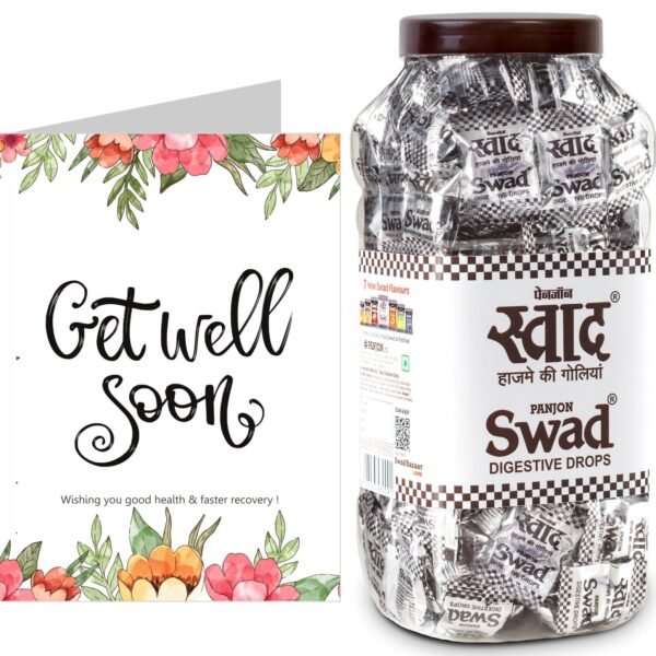 Swad Get Well Soon Gift with Card (Swad Digestive Candy 200 Jar & 1 Greeting card) – Fast Shipping to USA & Canada