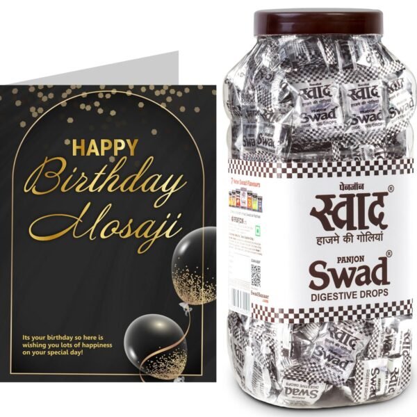 Swad Happy Birthday Mosaji/Masaji Gift with Card (Swad Digestive Candy 200 Jar & 1 Greeting card) – Fast Shipping to USA & Canada