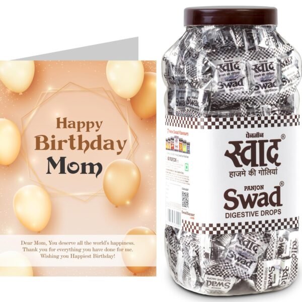 Swad Happy Birthday Mom Mother Gift with Card (Swad Digestive Candy 200 Jar & 1 Greeting card) – Fast Shipping to USA & Canada