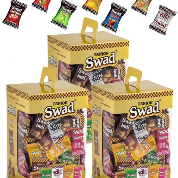 Swad Candy Gift Box, Mixed Toffee (Swad Original, Imli, Kaccha Aam, Lemon, Guava Chocolate) Pack of 3, 990g – Fast Shipping to USA & Canada