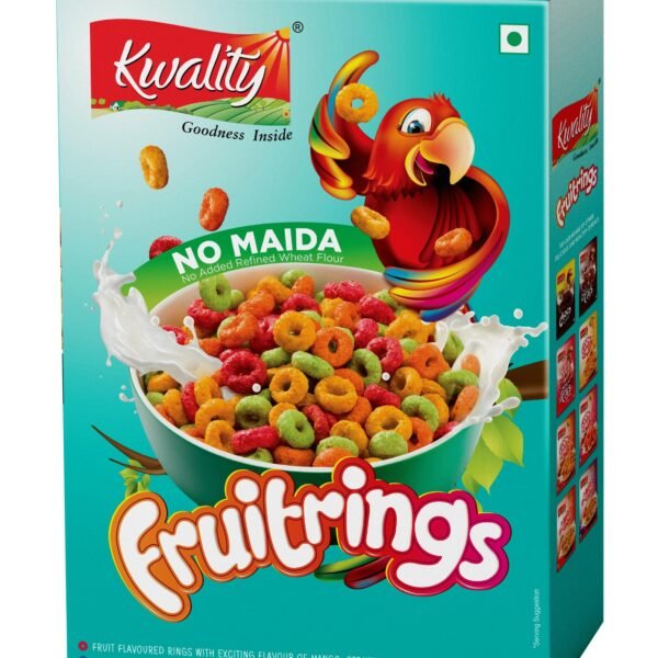 Kwality Fruitrings 375g| Mixed Fruit Flavor-Mango, Strawberry, Orange & Vanilla | Multigrain Breakfast Cereal for Kids | High in Protein & Fiber | Instant Food – Fast Shipping to USA & Canada