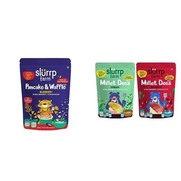 Slurrp Farm No Maida Pancake Mix With Real Blueberries 150g & Slurrp Farm Millet Dosa Instant Mix 150g Pack of 2 – Fast Shipping to USA & Canada