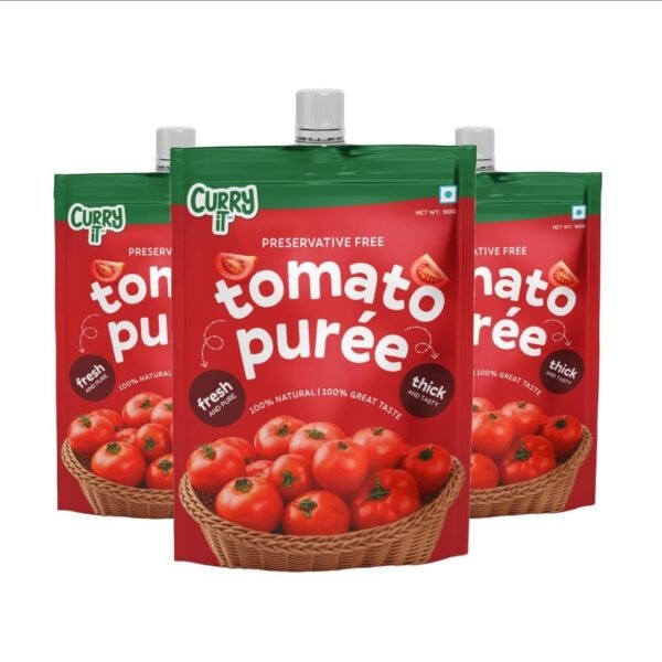 CURRYiT Tomato Puree 300 g (Pack of 3) | Made With 100% Fresh Hand picked Tomatoes | No onion, No Garlic | Tomato Paste For Cooking Pasta & Curries | No Added Preservatives or Colors | Pure & Natural – Fast Shipping to USA & Canada
