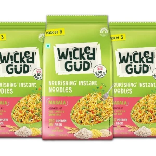 WickedGud Masala Noodles (207gm x 3) No Maida | No Oil | No MSG | High Protein | High Fibre | Cholesterol Free – Fast Shipping to USA & Canada