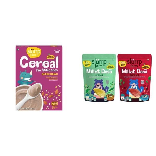 Slurrp Farm Sathu Maavu Multigrain Health Mix Ragi Dals & Almonds 200g & Slurrp Farm Millet Dosa Instant Mix 150g Pack of 2 – Fast Shipping to USA & Canada