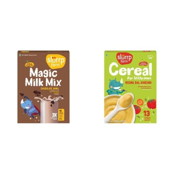 Slurrp Farm Chocolate Milk Mix 250g + Veg Moong Dal Khichdi 200g | Fast Shipping USA & Canada