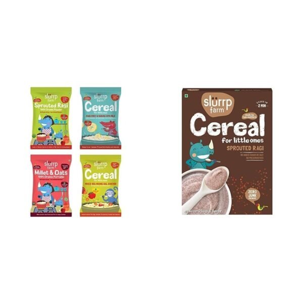 Slurrp Farm No Sugar No Salt First Foods Cereal Trial Pack Combo 50g*4 & Slurrp Farm Sprouted Ragi Powder 250g – Fast Shipping to USA & Canada