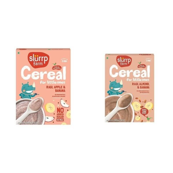Slurrp Farm Ragi & Apple Cereal (200g) + Ragi Almond Banana Cereal (200g) – Fast Shipping to USA & Canada